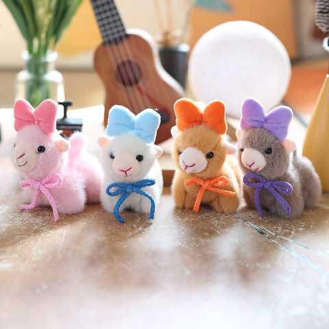 Vente en gros de pendentifs en peluche d'alpaga doux avec nœud papillon personnalisé poupées avec remplissage en coton PP sac d'agneau ornements porte-clés poupées en peluche